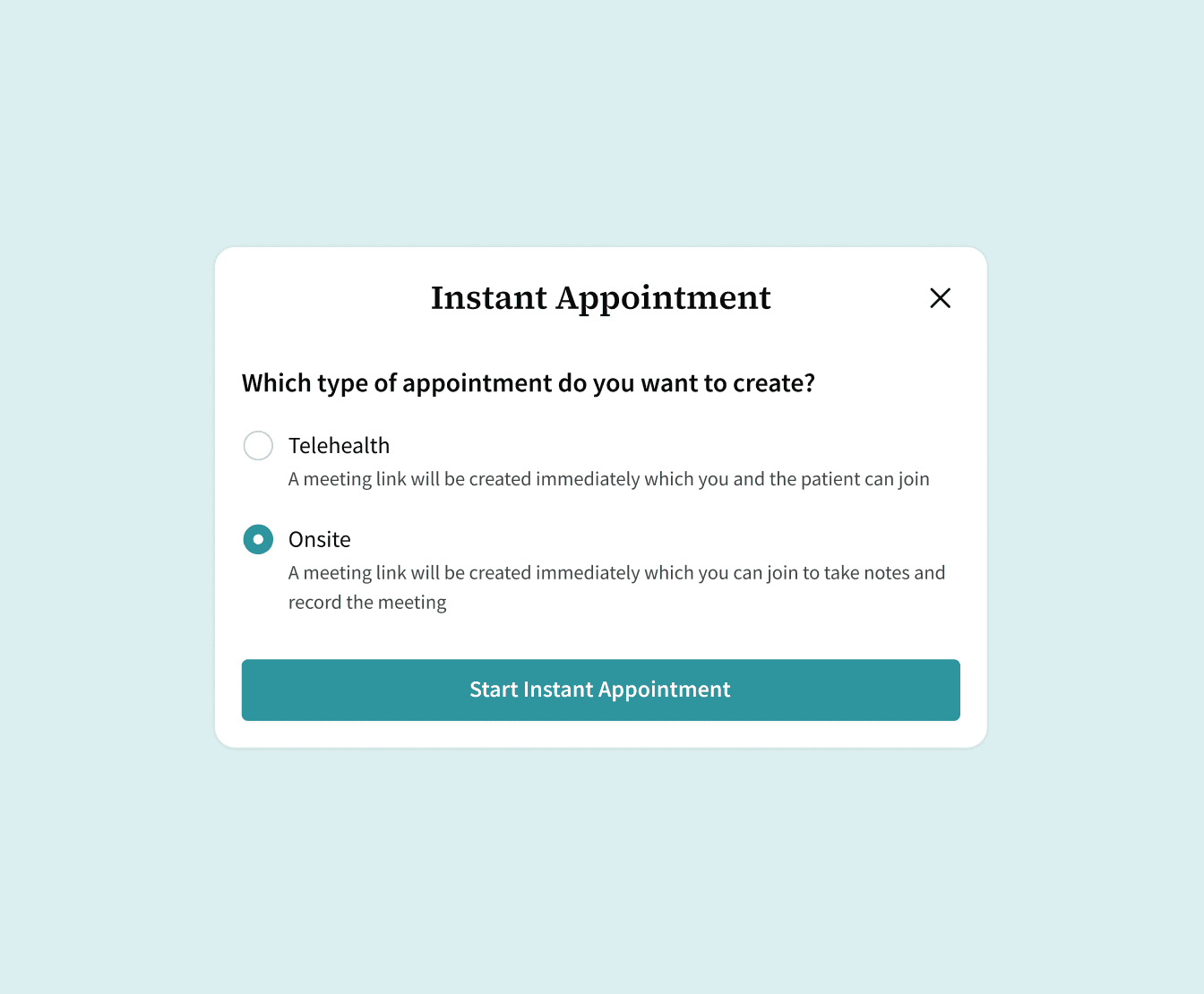 Generate one-time, secure session links instantly for urgent or unscheduled appointments.